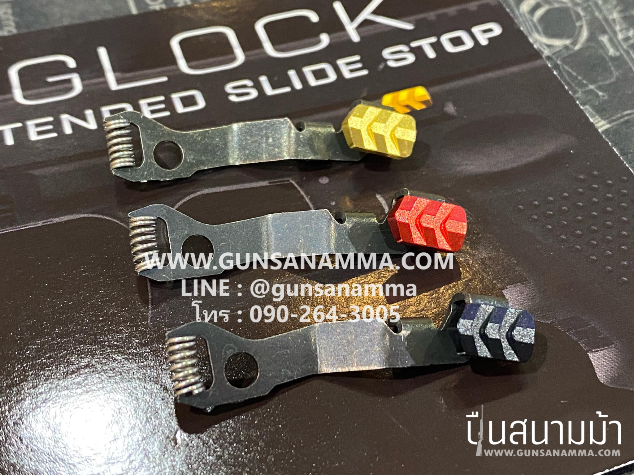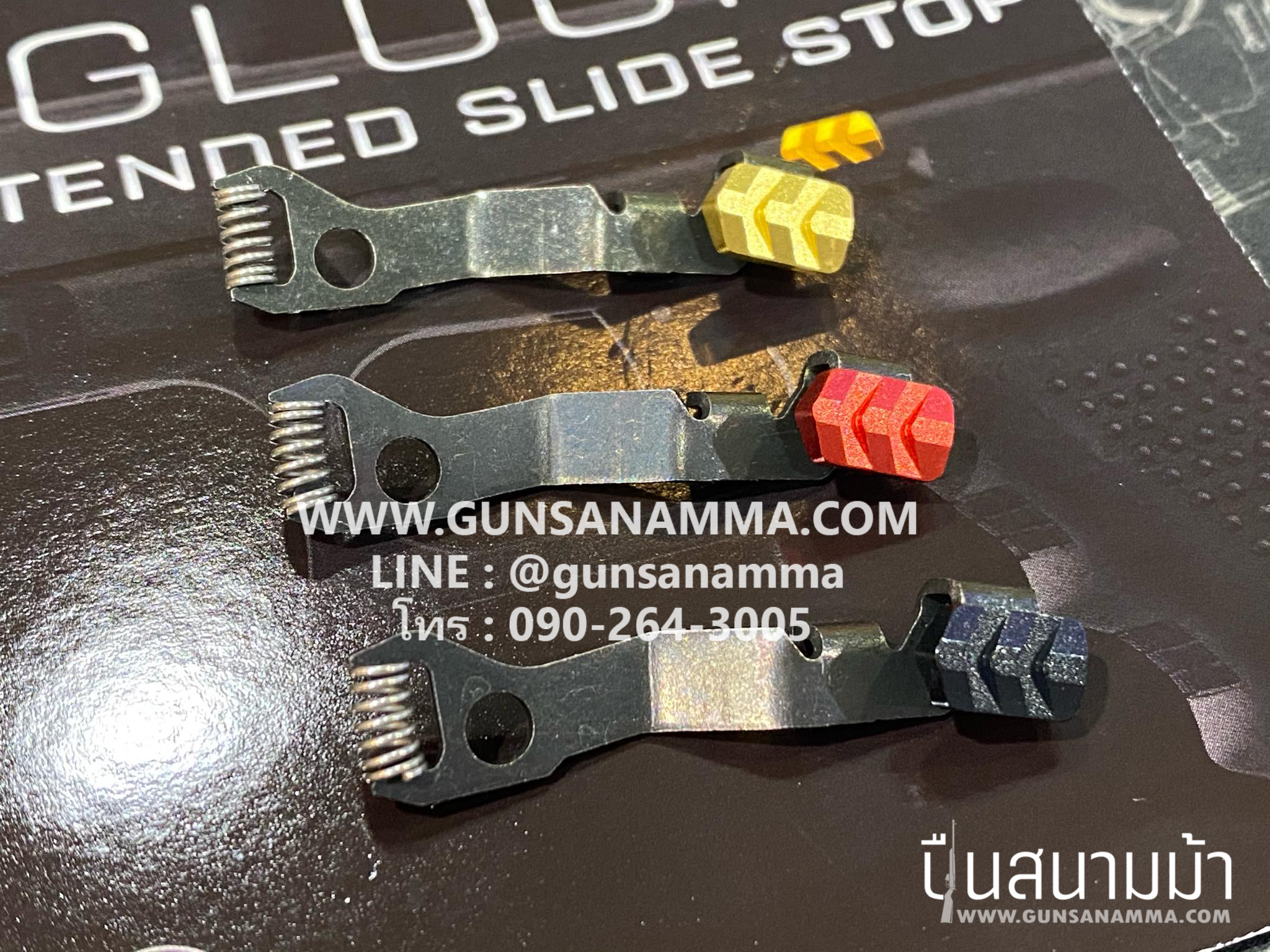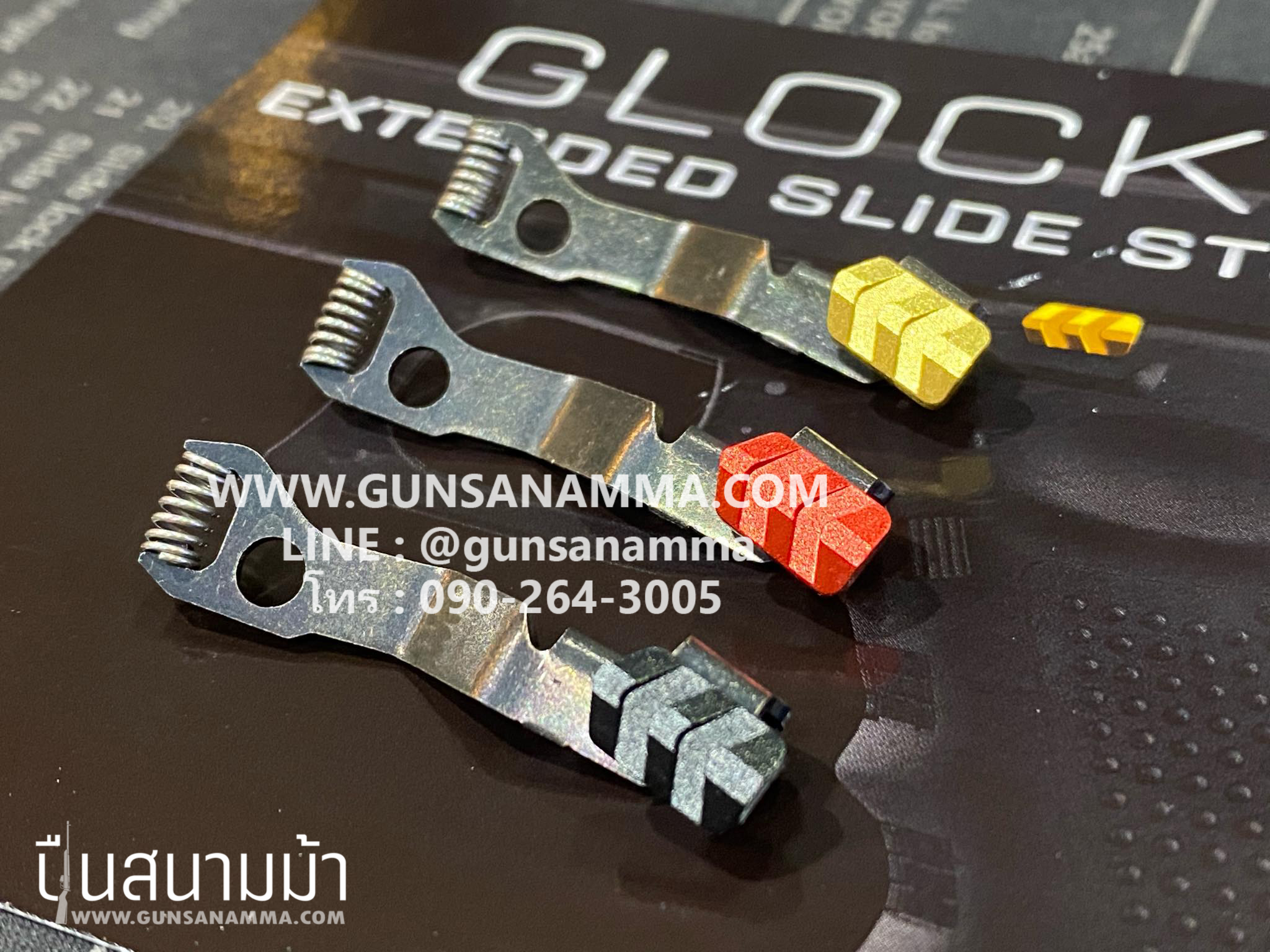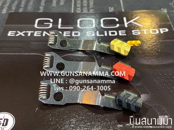 คันค้างสไลด์ GLOCK 43 Extended slide stop งานเหล็กชุบสี มีสี เหลือง แดง ดำ